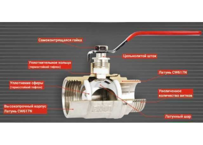 Корпус крана проводиться методом гарячого кування, матеріалом служить спеціальна латунь, покрита нікелем для стійкості до високого тиску і захисту від впливу всіляких агресивних компонентів при створенні трубопроводів, хромовані латунні штоки і кульові затвори, оброблені за допомогою полірування, виключають закипання несучих деталей запірної арматури, значно збільшуючи термін експлуатації