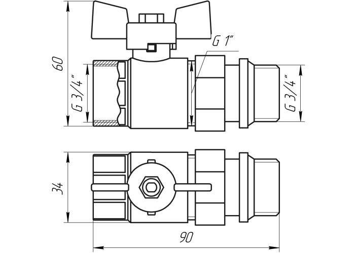 Тип зєднання, різьблення - внутрішня / американка зовнішня