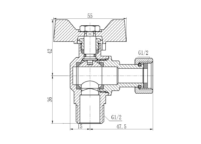 Кран кульовий з накидною гайкою SD Forte 1/2" ВЗ для води кутовий, матеріал виготовлення — латунь, покриття — нікель.