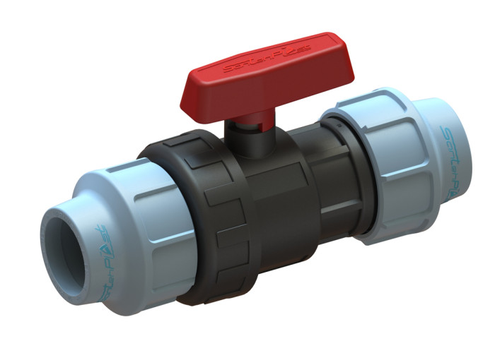 Кран кульовий для поліетиленових труб, різьба внутрішня, дiаметр 40 мм. Компресійні фітинги застосовуються для створення зовнішніх водопроводів, поливних систем і використовуються переважно для транспортування холодної води. Переваги: доступність за ціною, невелика вага, швидкий і легкий монтаж, що не вимагає додаткових інструментів, можливість створення роз'ємних з'єднань. Номінальна температура для застосування 20˚С, а максимальна робоча температура - до 60˚С в межах робочого діапазону труб. Номінальний тиск залежить від діаметра: для 16, 20, 25, 32, 40, 50, 63 мм воно складає 16 бар, для фітингів 75, 90 і 110 - 12,5 бар відповідно. Компресійні фітинги виробляються відповідно до стандартів UNI, ISO, DIN, NF, різьба відповідно до UNI, а фланцеві з'єднання відповідають вимогам UNI і DIN. Всі фітинги виконані відповідно до загальних технічних умов. Для виготовлення фітингів використовується чорний поліпропілен для корпусу, чорна прокладка з нітрилової гуми, біле затискне кільце з поліацетата і гайка з поліпропілену.