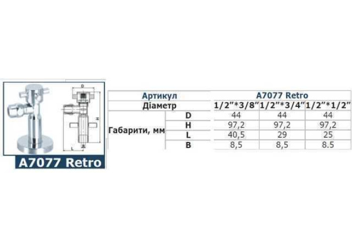 Кран кутовий кульовий напівперевертня з цангою 1/2 "х 3/8" Solomon 1STAR (Retro) (7077)