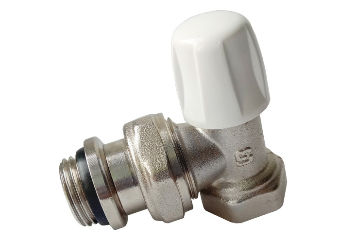 Зворотний кутовий радіаторний кран для систем опалення використовується в системах опалення, а також застосовується на трубопроводах систем питного і господарського призначення, гарячого водопостачання, на технологічних трубопроводах, що транспортують рідини, неагресивні до матеріалів крана. Основне призначення радіаторного крана - плавне регулювання витрати теплоносія через опалювальні прилади. У кранах в регулюючому механізмі не використовуються гумові деталі. Регулювання виконується за допомогою латунних деталей. Група радіаторних кранів представлена хромованими і нікельованими прямими і кутовими моделями, кранами під ключ запірними і кранами під термоголовкою. Робочий тиск: 0,8 МПа, робоча температура середовища, що транспортується: 120 ° С, допустима температура навколишнього середовища: від +5 до +45 С. Корпус виготовлений з нікельованої латуні різьблення зовнішня 1/2 ", регулювання - механічна.