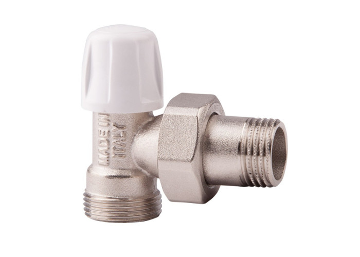 Кутовий нижній клапан. Для мідної, пластикової, металопластикової труби. Патрубок з кільцевою прокладкою. Ручний нижній вентиль служить для обмеження максимального протоку теплоносія через опалювальний прилад. Налаштування цього вентиля проводиться фахівцем один раз відповідно до вказівок проекту і закривається спеціальним ковпачком. Вентиль ICMA виконаний з високоякісного матеріалу, корпус вентиля виконаний з високоякісної латуні гарячого штампування, зовнішнє покриття - нікелювання. Ручка вентиля виконана з ударостійкого полістиролу. Розміри підключення випускаються вентилів: 3/8 "- 1/2". Максимальна температура використання - Т = 120 ° С.