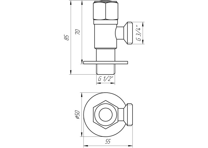 Кран кутовий керамік NV-QP888 1/2 "х 1/2" Q PROFESSIONAL