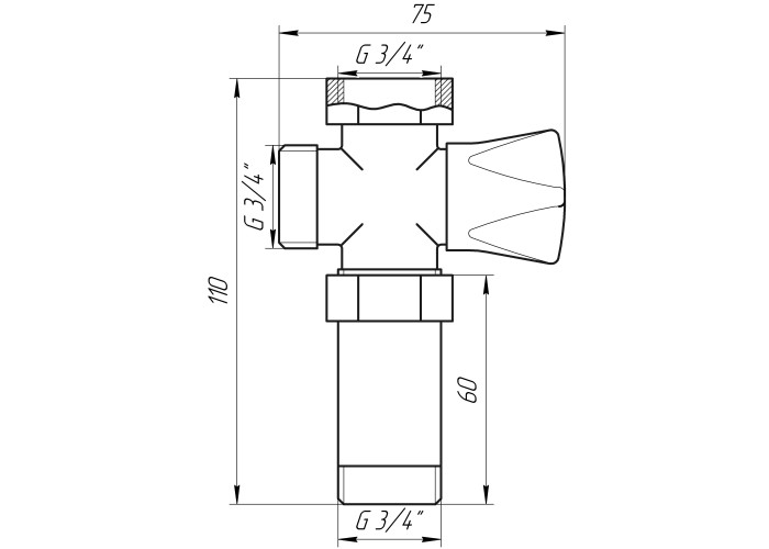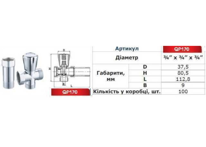 Кран наскрізної для пральної машини 3/4 * 3/4 * 3/4 вентильний з подовженою обертається гайкою NV-QP170 Professiona