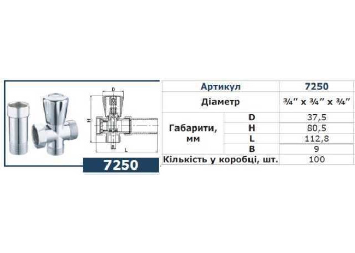 Кран наскрізної для пральної машини 3/4 * 3/4 * 3/4 вентильний з подовженою обертається гайкою 4117 (A7250) Solomon
