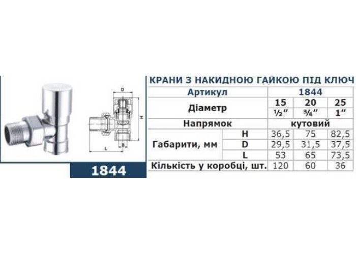 Кран вентильний кутовий з американкою SOLOMON 3/4" CHROM 1844 п/ключ