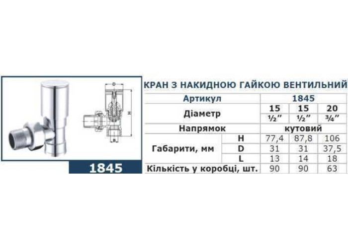 Кран вентильний кутовий з американкою SOLOMON 3/4" CHROM 1845 вент.