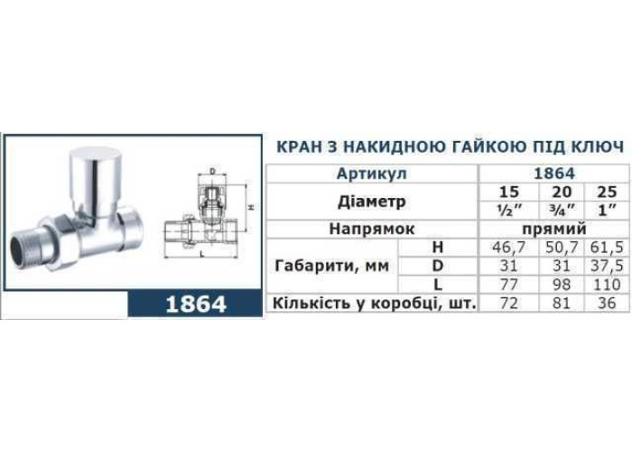 Кран з накидною гайкою 3/4 "прямий під ключ CHROM Art. 1864 Solomon