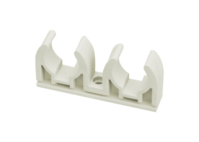 Подвійне кріплення PPR Blue Ocean 16 виготовлено з високоякісного поліпропілену в білому класичному кольорі, завдяки чому термостійкий та виглядає естетично. Саме тому його частіше застосовують під час монтажу водопроводу з гарячою і холодною водою. Кріплення складається з пласкої основи з отворами для шурупів і двох U-подібних скоб для фіксації на стіні труб діаметром 16 мм.