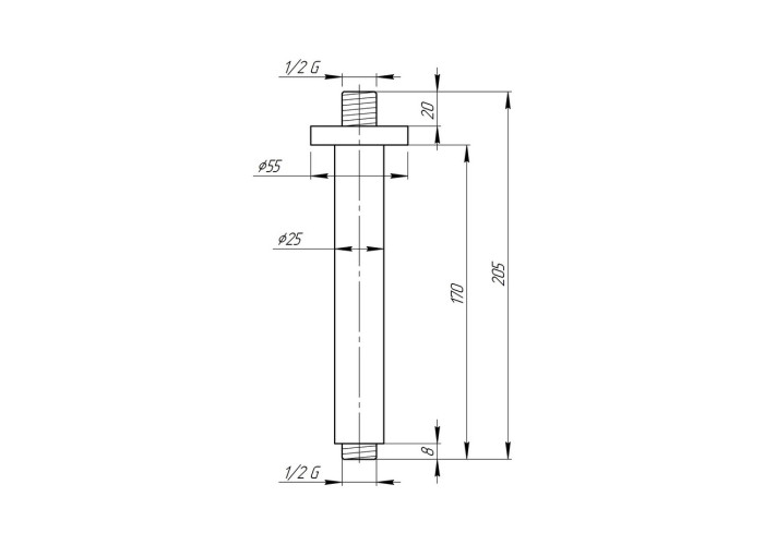 Кронштейн для верхнього душу Qtap 0012 CRM виконаний з латуні з хромованим глянцевим покриттям, завдяки чому виріб стійкий до подряпин, впливу агресивних мийних засобів, утворення корозії й зносу. Він складається з довгастого циліндричного корпусу, круглої розетки, яка дозволяє приховати сліди стельового монтажу, а також, підводу з зовнішньою наріззю й універсальним діаметром 1/2" для підключення лійки.