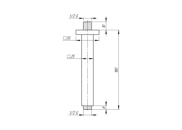 Кронштейн для верхнього душу Qtap 0013 CRM виконаний з латуні, завдяки чому виріб стійкий до подряпин, впливу агресивних мийних засобів, утворення корозії й зносу. Він складається з довгастого прямокутного корпусу, квадратної розетки, яка дозволяє приховати сліди стельового монтажу, а також, підводу з зовнішньою наріззю й універсальним діаметром 1/2" для підключення лійки.