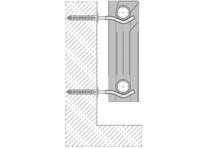 Призначення: Фіксування секційного (біметалічного, алюмінієвого) радіатора на "твердотілих" стінах (цегла, бітон, гіпсоблок, піноблок і т.п.)