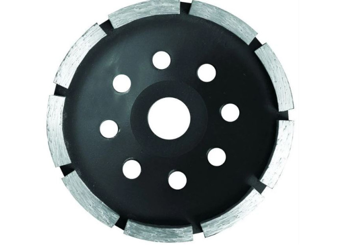 Круг алмазний сегментний шліфувальний - алмазний інструмент для шліфування поверхонь бетону, цегли і граніту. Особливості: корпуси кругів виготовлені методом точіння, що виключає їх дисбаланс і підвищує точність позиціонування; алмазоносні сегменти шліфувальних кругів спеціалізовані за типами матеріалів, які обробляються; алмазні порошки - високоміцні синтетичні монокристали; насиченість діамантовою крихтою 25%; чашеподібна форма і велика кількість алмазоносних сегментів дозволяє виробляти шліфування з більшою продуктивністю; круг алмазний чашковий "турбо" через радіально розташовані сегменти на чашковому корпусі має можливість кращого відведення відходів і ефективного охолодження під час шліфувальних робіт.