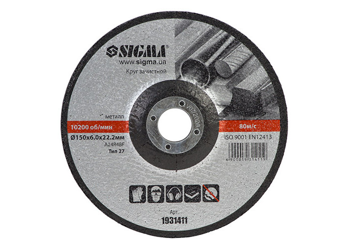 Круг зачисний по металу Ø150х6.0х22.2мм, 10200 об/хв Sigma 1931411