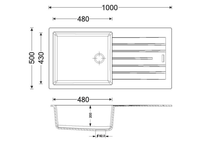 Мийка, сифон, зливник/перелив, кошиковий вентиль, кріпильні деталі, ущільнювальна стрічка.