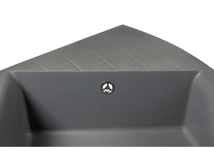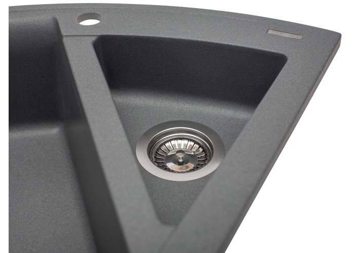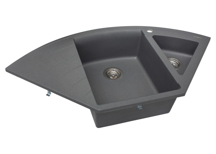 Завдяки своїй унікальній формі мийка легко монтується в стільницю у куту. Розмір 1100*575*215 мм, матеріал - кварцевий пісок. Такий матеріал не вбирає запахи та не втрачає свій колір.