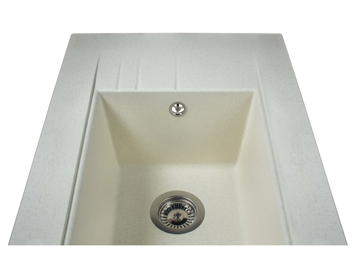 Завдяки своїй унікальній формі мийка легко монтується в стільницю у куту. Розмір 1100*575*215 мм, матеріал - кварцевий пісок. Такий матеріал не вбирає запахи та не втрачає свій колір.
