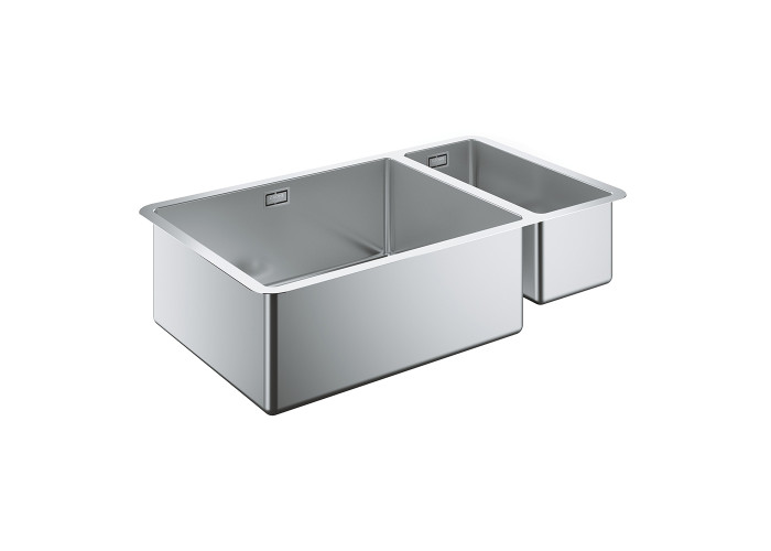 Кухонна мийка Grohe Sink 31575SD0 виготовлена з нержавіючої сталі, що гарантує її надійність і привабливість поверхні. Завдяки системі GROHE QuickFix установлення мийки не візьме багато часу та не потребує додаткового обладнання. Мийка виконана з двома чашами та квадратними мінімалістичними переливами у кожній, монтується під стільницю. Основна чаша, яка повинна знаходиться зліва, має глибину 19,5 см, що робить мийку дуже зручною і практичною. Ізоляція GROHE Whisper на нижній частині мийки.