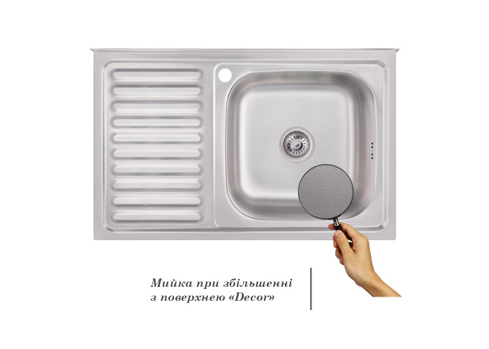 Мийка Imperial 5080-R Decor виготовлена з високоякісної нержавіючої сталі харчової марки, тому виріб прослужить довгі роки. Також варто відзначити винятковий дизайн, який прикрасить будь-яку кухню. Відмінна якість та дизайн мийки задовольнять найвибагливі побажання й створять затишок у вашому домі! Мийка виконана з робочою чашею, крилом для сушіння посуду і розморожування продуктів, отвором для змішувача. Монтується урізним способом в отвір в стільниці. Поверхня - ребриста, не забруднюється.