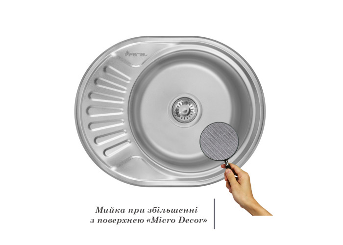 Мийка Imperial 5745 Decor виготовлена з високоякісної нержавіючої сталі харчової марки, тому виріб прослужить довгі роки. Також варто відзначити винятковий дизайн, який прикрасить будь-яку кухню. Відмінна якість та дизайн мийки задовольнять найвибагливі побажання й створять затишок у вашому домі! Мийка виконана з робочою круглою чашею, ребристим крилом для сушіння посуду та розморожування продуктів. Монтується урізним способом в отвір в стільниці. Поверхня - ребриста, не забруднюється.