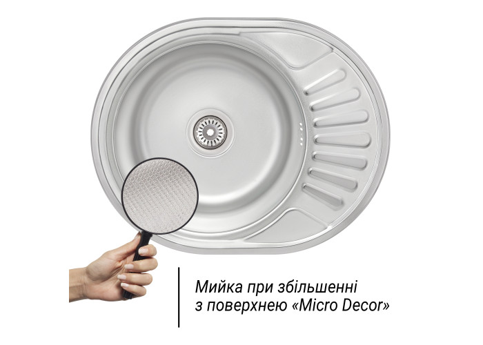 Мийка Imperial 5745 (0,8мм) Micro Decor виготовлена з високоякісної нержавіючої сталі харчової марки, тому виріб прослужить довгі роки. Також варто відзначити винятковий дизайн, який прикрасить будь-яку кухню. Відмінна якість та дизайн мийки задовольнять найвибагливі побажання й створять затишок у вашому домі! Мийка виконана з робочою круглою чашею, ребристим крилом для сушіння посуду та розморожування продуктів. Монтується урізним способом в отвір в стільниці. Поверхня - ребриста.