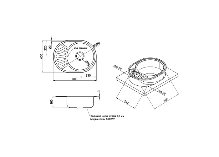 Мийка Imperial 5745-6044 (0,6мм) Polish 160 mm виготовлена з високоякісної нержавіючої сталі харчової марки, тому виріб прослужить довгі роки. Також варто відзначити винятковий дизайн, який прикрасить будь-яку кухню. Відмінна якість та дизайн мийки задовольнять найвибагливі побажання й створять затишок у вашому домі! Мийка виконана з робочою круглою чашею, ребристим крилом для сушіння посуду та розморожування продуктів. Монтується урізним способом в отвір в стільниці.