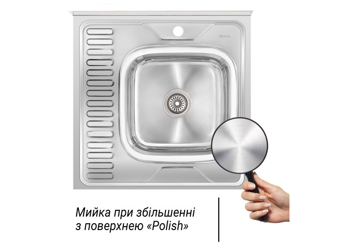 Мийка Imperial 6060-R (0,6мм) Polish виготовлена з високоякісної нержавіючої сталі харчової марки, тому виріб прослужить довгі роки. Також варто відзначити винятковий дизайн, який прикрасить будь-яку кухню. Відмінна якість та дизайн мийки задовольнять найвибагливі побажання й створять затишок у вашому домі! Мийка виконана з робочою чашею, ребристим крилом для сушіння посуду і розморожування продуктів, отвором для змішувача. Монтується урізним способом в отвір в стільниці.