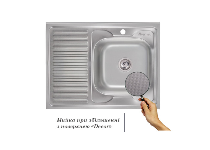 Мийка Imperial 6080-R (0,6мм) Decor виготовлена з високоякісної нержавіючої сталі харчової марки, тому виріб прослужить довгі роки. Також варто відзначити винятковий дизайн, який прикрасить будь-яку кухню. Відмінна якість та дизайн мийки задовольнять найвибагливі побажання й створять затишок у вашому домі! Мийка виконана з робочою чашею, ребристим крилом для сушіння посуду і розморожування продуктів, отвором для змішувача. Монтується урізним способом в отвір в стільниці. Поверхня - ребриста.