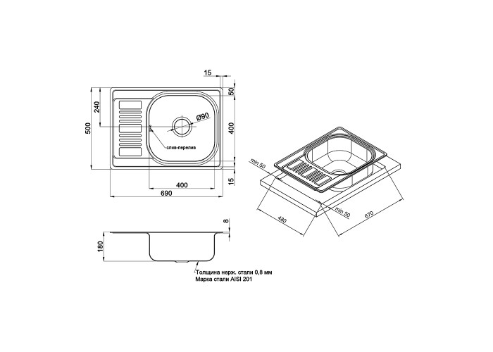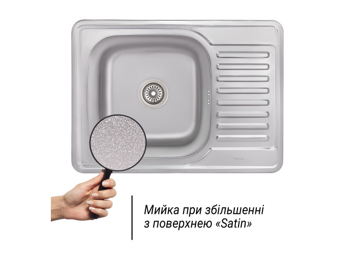 Мийка Imperial 6950 Satin виготовлена з високоякісної нержавіючої сталі харчової марки, тому виріб прослужить довгі роки. Також варто відзначити винятковий дизайн, який прикрасить будь-яку кухню. Відмінна якість та дизайн мийки задовольнять найвибагливі побажання й створять затишок у вашому домі! Мийка виконана з робочою чашею, ребристим крилом для сушіння посуду та розморожування продуктів. Монтується урізним способом в отвір в стільниці. Поверхня - матова, гладка, швидко миється.