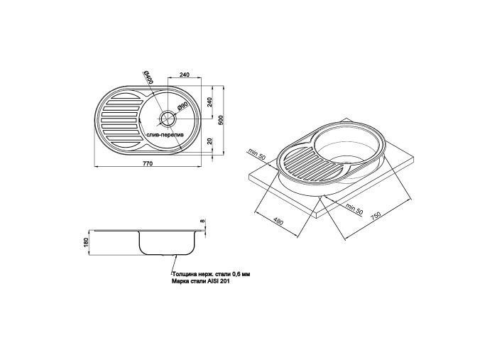 Мийка Imperial 7750 (0,6мм) Micro Decor виготовлена з високоякісної нержавіючої сталі харчової марки, тому виріб прослужить довгі роки. Також варто відзначити винятковий дизайн, який прикрасить будь-яку кухню. Відмінна якість та дизайн мийки задовольнять найвибагливі побажання й створять затишок у вашому домі! Мийка виконана з робочою круглою чашею, ребристим крилом для сушіння посуду та розморожування продуктів. Монтується урізним способом в отвір в стільниці. Поверхня - ребриста, не забруднюється.