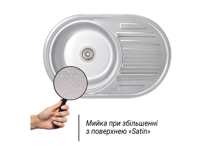 Мийка Imperial 7750 (0,6мм) Satin виготовлена з високоякісної нержавіючої сталі харчової марки, тому виріб прослужить довгі роки. Також варто відзначити винятковий дизайн, який прикрасить будь-яку кухню. Відмінна якість та дизайн мийки задовольнять найвибагливі побажання й створять затишок у вашому домі! Мийка виконана з робочою круглою чашею, ребристим крилом для сушіння посуду та розморожування продуктів. Монтується урізним способом в отвір в стільниці. Поверхня - матова, гладка.