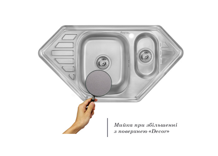 Мийка Imperial 9550-D Decor виготовлена з високоякісної нержавіючої сталі харчової марки, тому виріб прослужить довгі роки. Також варто відзначити винятковий дизайн, який прикрасить будь-яку кухню. Відмінна якість та дизайн мийки задовольнять найвибагливі побажання й створять затишок у вашому домі! Мийка виконана з основною прямокутною чашею, додатковою для розморожування продуктів, двома ребристими крилами для сушіння посуду та отвором під змішувач. Монтується урізним способом в стільницю.