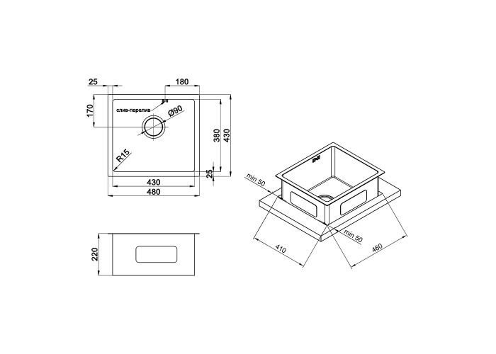 Мийка, сифон, зливник/перелив, кошиковий вентиль.
