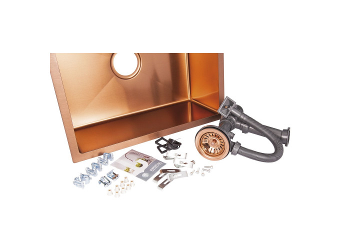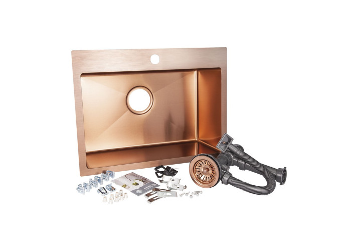 Мийка Imperial D5843BR PVD bronze Handmade 2.7/1.0 mm виготовлена з високоякісної нержавіючої сталі харчової марки, тому виріб прослужить довгі роки. Також варто відзначити винятковий дизайн, який прикрасить будь-яку кухню. Відмінна якість та дизайн мийки задовольнять найвибагливі побажання й створять затишок у вашому домі! Мийка виконана з основною чашею з переливом та отвором під змішувач. На полірованій поверхні відсутні пори, тому вона не забруднюється, швидко миється, стійка до подряпин.