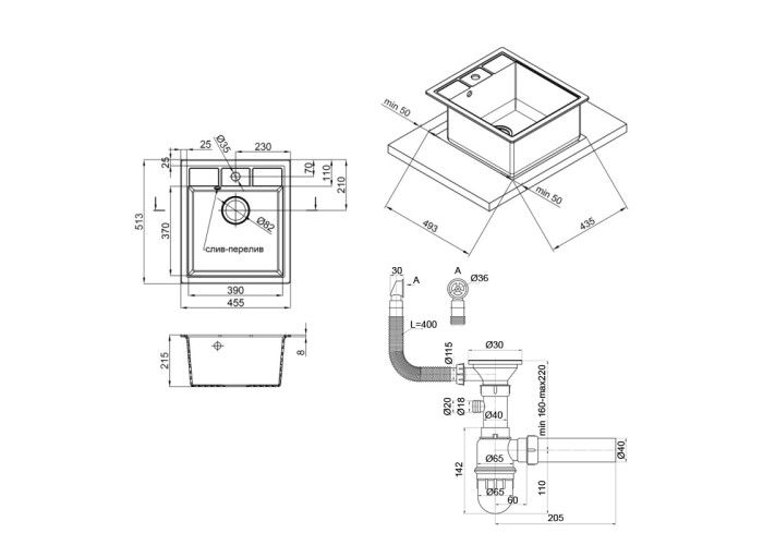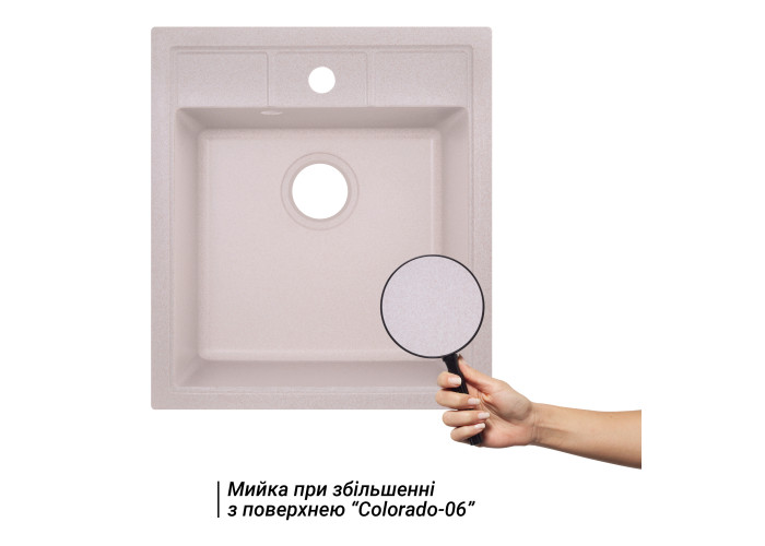 Кухонна мийка Lidz (COL-06) 460х515/200 виготовлена ??з якісного штучного каменю, з отвором під змішувач, має матову поверхню. Відмінна якість і дизайн мийки дозволять задовольнити найвищі вимоги. Вона виконана з робочою чашею, з отвором під злив-перелив. Мийка монтується урізним способом в отвір в стільниці.
