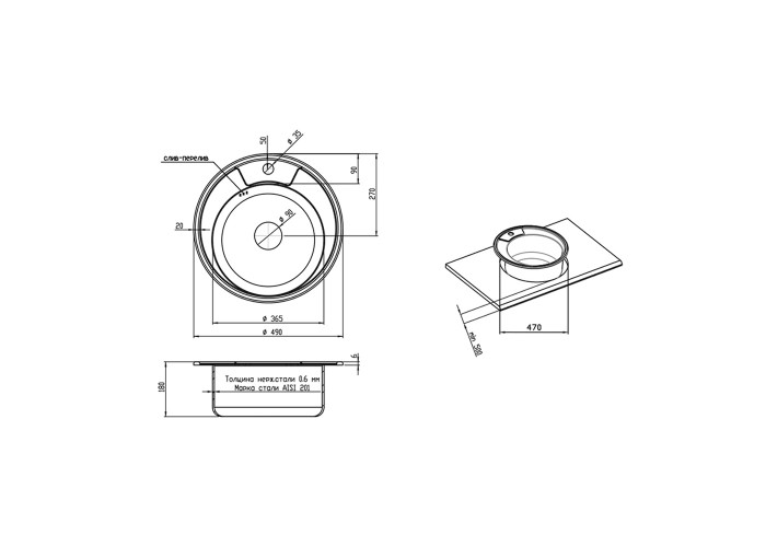 Кухонна мийка Lidz 490-A Satin 0,6 мм виготовлена з високоякісної нержавіючої сталі харчової марки, тому виріб прослужить довгі роки. Так само варто відзначити винятковий дизайн який прикрасить будь-яку кухню. Відмінна якість і дизайн мийки дозволять задовольнити найвищі вимоги і створити затишок у вашому домі! Мийка виконана з круглою чашею і отвором під змішувач, монтується врізним способом в отвір в стільниці. Поверхня - ребриста, не забруднюється, швидко миється.