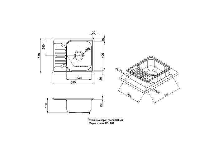 Кухонна мийка Lidz 5848 Satin (0,8 мм) виготовлена з високоякісної нержавіючої сталі харчової марки, тому виріб прослужить довгі роки. Також варто відзначити винятковий дизайн який прикрасить будь-яку кухню. Відмінна якість і дизайн мийки дозволять задовольнити найвищі вимоги і створити затишок у вашому будинку! Мийка виконана з робочою чашею, ребристим крилом для сушіння посуду та розморожування продуктів. Монтується урізним способом в отвір у стільниці. Поверхня - матова, гладка.