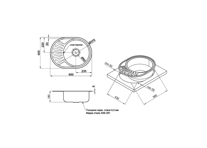 Кухонна мийка Lidz 6044 Satin (0,8 мм) виготовлена з високоякісної нержавіючої сталі харчової марки, тому виріб прослужить довгі роки. Також варто відзначити винятковий дизайн який прикрасить будь-яку кухню. Відмінна якість і дизайн мийки дозволять задовольнити найвищі вимоги і створити затишок у вашому будинку! Мийка виконана з робочою круглою чашею, ребристим крилом для сушіння посуду і розморожування продуктів. Монтується урізним способом в отвір у стільниці. Поверхня - матова.
