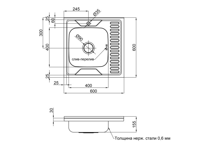 Кухонна мийка Lidz 6060-L Polish 0.6 мм (LIDZ6060LPOL06) виготовлена з нержавіючої сталі харчової марки, тому виріб прослужить довгі роки. Також варто відзначити винятковий дизайн, який прикрасить будь-яку кухню. Відмінна якість та дизайн мийки задовольнять найвибагливі побажання! Мийка виконана з робочою чашею, ребристим крилом для сушіння посуду і розморожування продуктів, отвором для змішувача. Монтується накладним способом в отвір в стільниці.