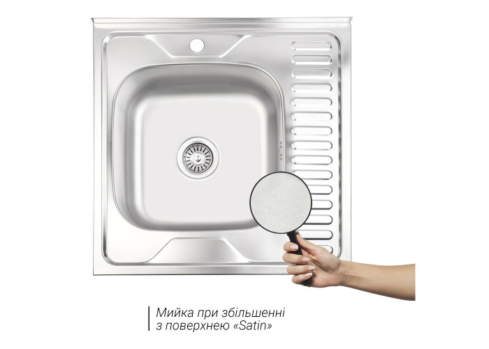 Кухонна мийка Lidz 6060-L Satin 0,6 мм (LIDZ6060SAT06) виготовлена з нержавіючої сталі харчової марки, тому виріб прослужить довгі роки. Також варто відзначити винятковий дизайн, який прикрасить будь-яку кухню. Відмінна якість та дизайн мийки задовольнять найвибагливі побажання! Мийка виконана з робочою чашею, ребристим крилом для сушіння посуду і розморожування продуктів, отвором для змішувача. Монтується накладним способом в отвір в стільниці.