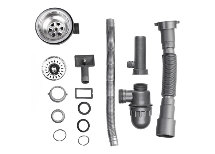 Мийка, сифон, зливник/перелив, кошиковий вентиль, ущільнювальна стрічка.