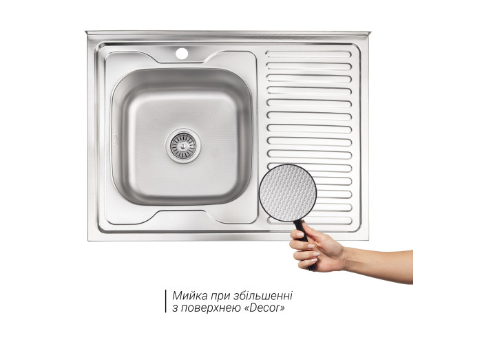 Кухонна мийка Lidz 6080-L Decor 0,6 мм (LIDZ6080DEC06) виготовлена з нержавіючої сталі харчової марки, тому виріб прослужить довгі роки. Також варто відзначити винятковий дизайн, який прикрасить будь-яку кухню. Відмінна якість та дизайн мийки задовольнять найвибагливі побажання й створять затишок у вашому домі! Мийка виконана з робочою чашею, ребристим крилом для сушіння посуду і розморожування продуктів, отвором для змішувача. Монтується накладним способом у стільницю.