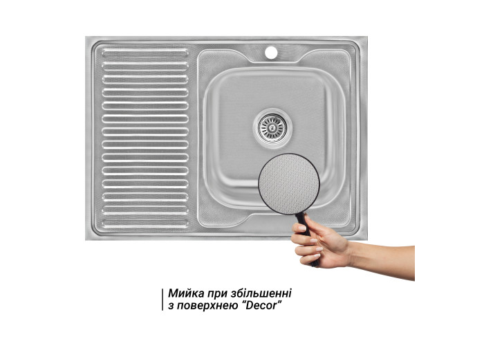 Кухонна мийка Lidz 6080-R Decor 0,6 мм (LIDZ6080RDEC06) виготовлена з високоякісної нержавіючої сталі харчової марки, тому виріб прослужить довгі роки. Так само варто відзначити винятковий дизайн який прикрасить будь-яку кухню. Відмінна якість і дизайн мийки дозволять задовольнити найвищі вимоги. Мийка виконана з робочою чашею, крилом для сушіння посуду і розморожування продуктів, отвором під змішувач. Монтується накладним способом в стільницю.