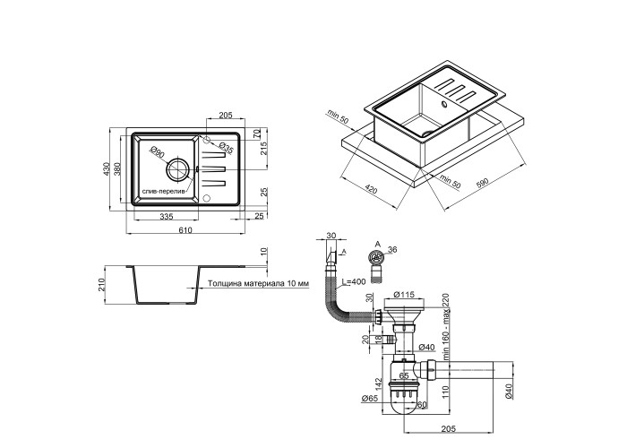 Мийка, сифон, кріплення.