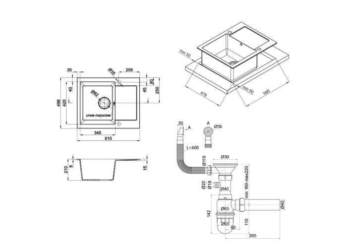 Мийка, сифон.