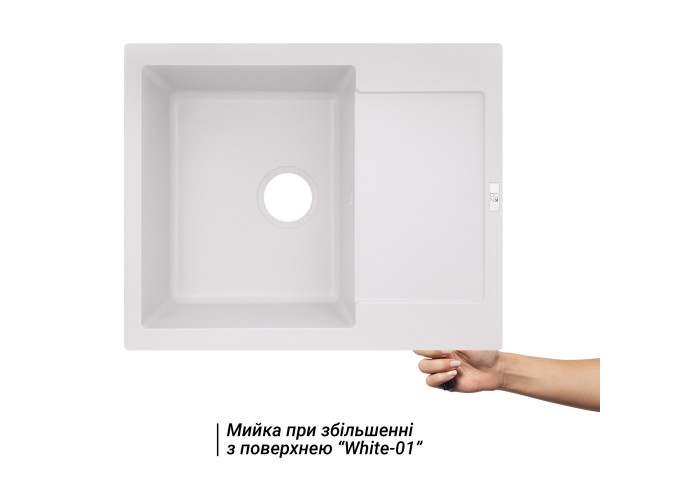 Кухонна мийка Lidz (WHI-01) 625x500/200 виготовлена ??з якісного штучного каменю, має матову поверхню. Відмінна якість і дизайн мийки дозволять задовольнити найвищі вимоги. Вона виконана з робочою чашею з отвором під злив-перелив і ребристим крилом для сушіння посуду або розморожування продуктів. Мийка монтується урізним способом в отвір в стільниці.