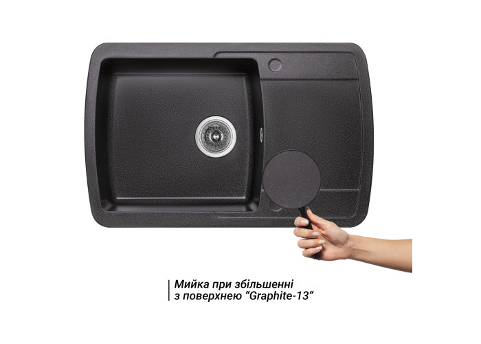 Кухонна мийка Lidz 770х490/200 GRF-13 (LIDZGRF13770490200) виготовлена ??з якісного штучного каменю, має матову поверхню і буде добре виглядати у поєднанні зі змішувачем того ж кольору. Виріб монтується урізним способом у підготовлений отвір в стільниці. Мийка виконана з робочою чашею та крилом, на ній є отвір злив-перелив та заготовка для отвору під змішувач. Відмінна якість та дизайн мийки задовольнять найвибагливі вимоги.