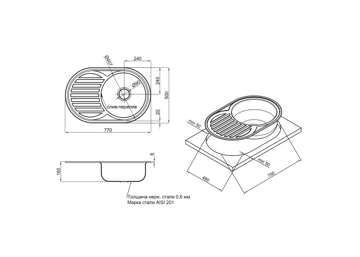 Кухонна мийка Lidz 7750 Polish 0,6 мм виготовлена з високоякісної нержавіючої сталі харчової марки, тому виріб прослужить довгі роки. Так само варто відзначити винятковий дизайн який прикрасить будь-яку кухню. Відмінна якість і дизайн мийки дозволять задовольнити найвищі вимоги і створити затишок у вашому домі! Мийка виконана з робочою круглою чашею, ребристим крилом для сушіння посуду і розморожування продуктів. Монтується врізним способом в отвір в стільниці.