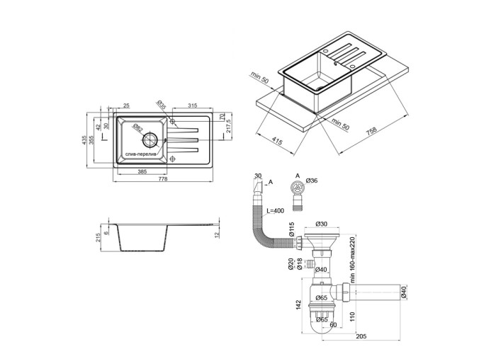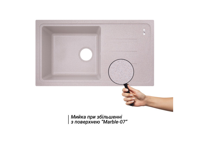Кухонна мийка Lidz (MAR-07) 780x435/200 виготовлена ??з якісного штучного каменю, має матову поверхню. Відмінна якість і дизайн мийки дозволять задовольнити найвищі вимоги. Вона виконана з робочою чашею з отвором під злив-перелив і ребристим крилом для сушіння посуду або розморожування продуктів. Мийка монтується урізним способом в отвір в стільниці.
